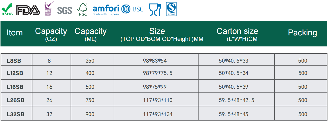 Certificados:BRC, FSC, DIN, FDA, LFGB, BSCI, ABA, BPI